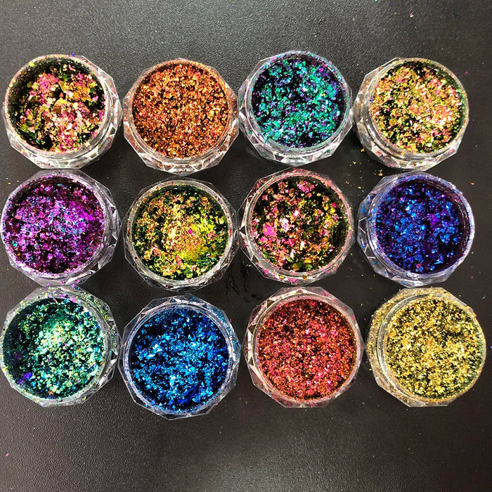 1 frasco de pó para unhas Chameleon Opal Nail Flakes líquido 0,2 g Holográfico Chameleon Chrome Flakes Rainbow Eyeshadow em pó Chameleon PT*6565