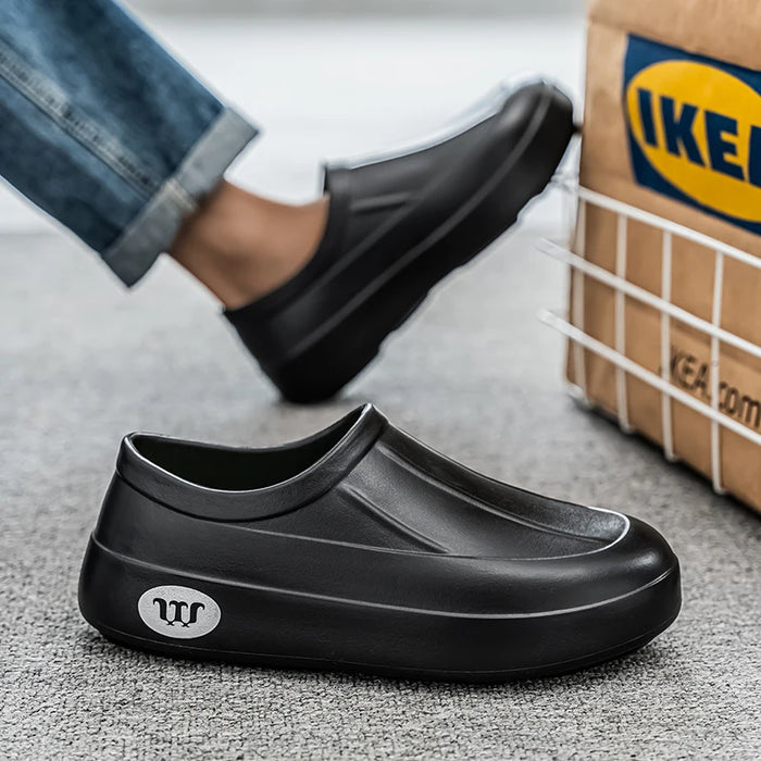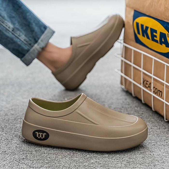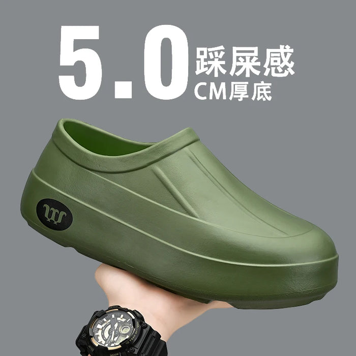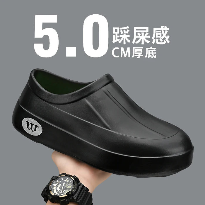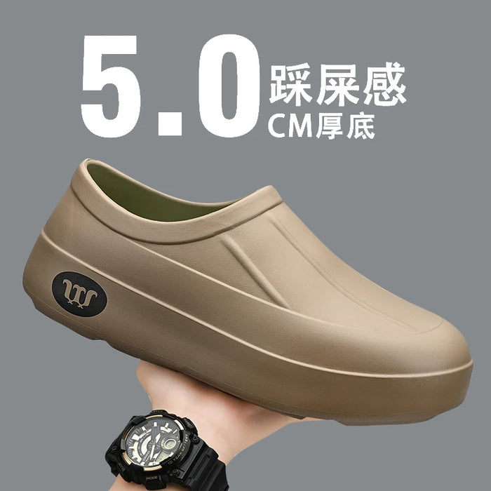 Novos sapatos de chef EVA respiráveis através da prova de óleo, pantufas preguiçosas, casuais, versáteis, para caminhada ao ar livre, com um pé, sapatos de chuva