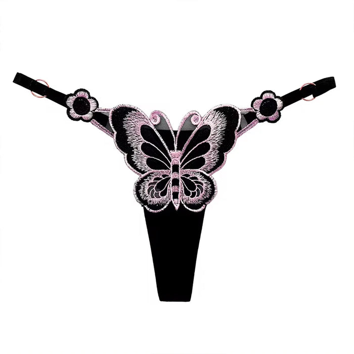 Calcinha fio dental de renda sexy feminina borboleta cintura baixa fio dental transparente calcinha de malha cintura ajustável calcinha culotte femme