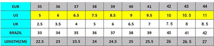 2. Escolha o tamanho EUR correspondente à base no comprimento do pé. Por exemplo, se o comprimento do seu pé for 23 cm, escolha o tamanho 36.
