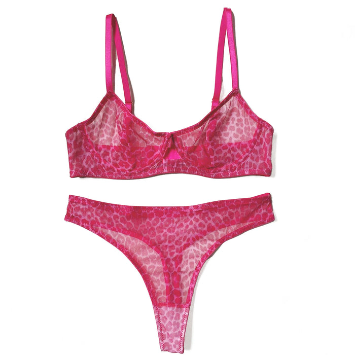 Conjunto de sutiã feminino sexy com estampa de leopardo, sutiã transparente com aro, calcinha, lingerie sexy, fina e sedutora, conjunto de lingerie estampada em malha