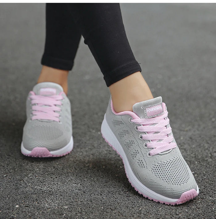 Tênis femininos 2024, novos tênis respiráveis da moda, tênis confortáveis, tecido de malha, cadarço, tênis feminino para mulheres