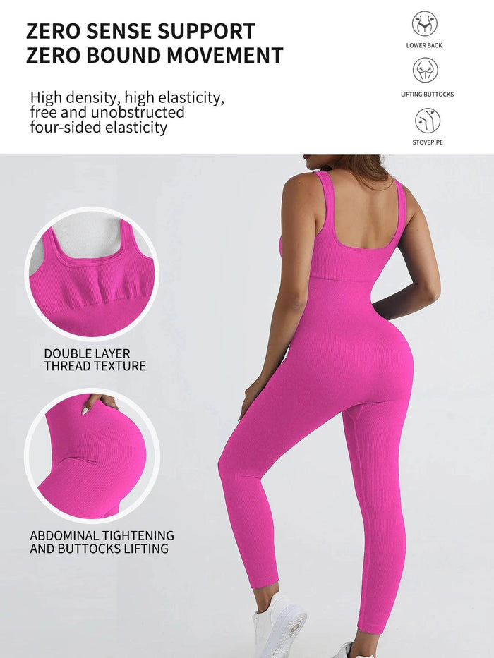 Sem costura: O macacão é projetado com o mínimo de costuras para um ajuste mais confortável e maior mobilidade.
